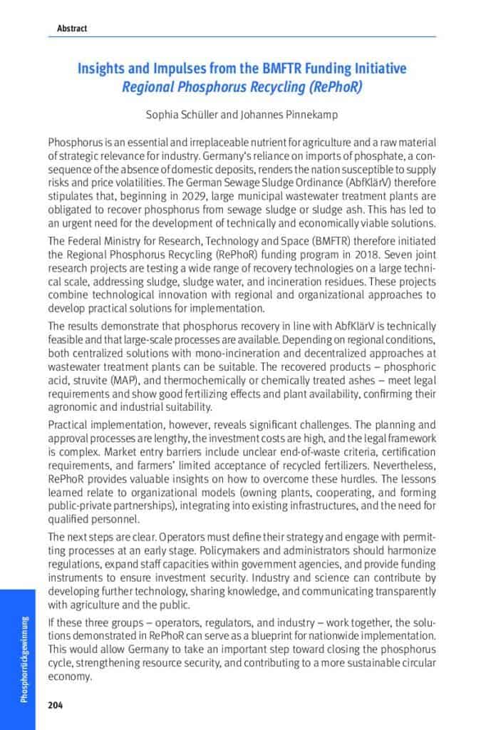 Erkenntnisse und Praxisimpulse aus der BMFTR-Fördermaßnahme Regionales Phosphor-Recycling (RePhoR)