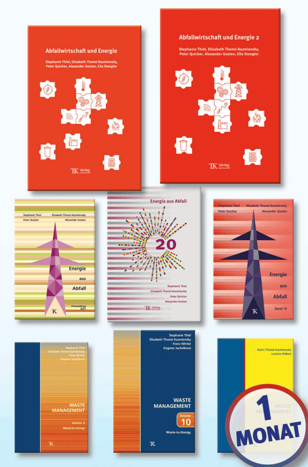 Die Monatslizenz umfasst alle bereits veröffentlichten Beiträge der Buchreihen „Abfallwirtschaft und Energie“ (2024 – bis heute), „Energie aus Abfall“ (2006 – bis 2023), „Strategie, Planung und Umweltrecht“ (2008-2017) und „Waste Management“ (englischsprachig, 2010 bis 2022).